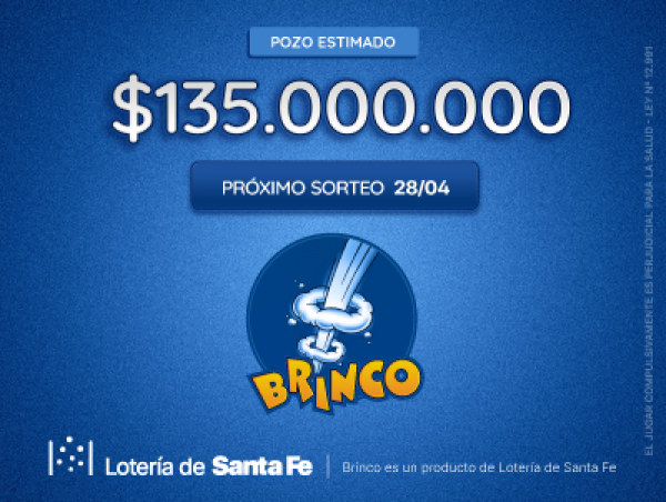 Lotería de Santa Fe informa que durante el sorteo de Brinco, no se registraron ganadores con seis aciertos quedando un pozo estimado de $135 millones para el próximo sorteo.