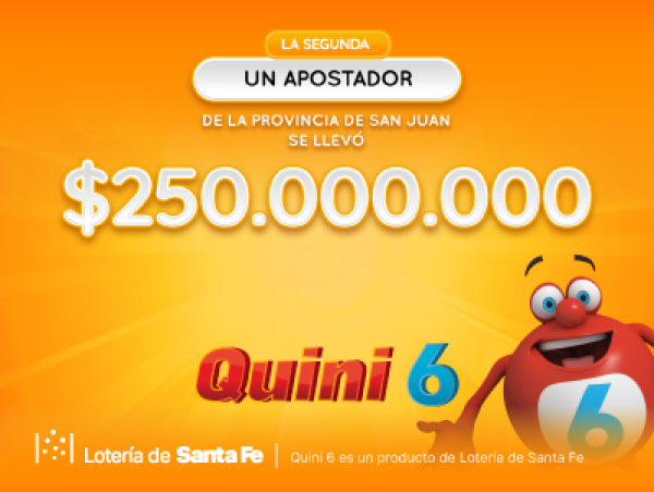¡UN SANJUANINO SE LLEVÓ $250 MILLONES EN EL QUINI 6!
