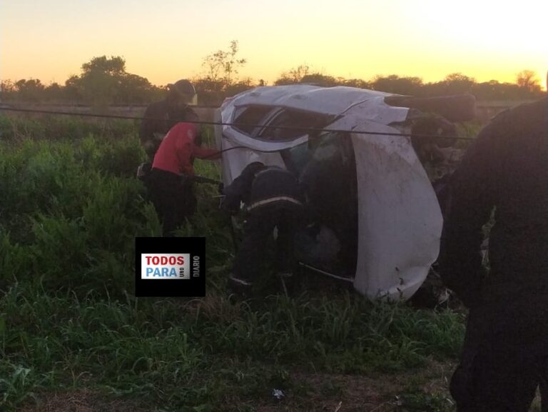 Un automóvil Toyota Corolla despistó y volcó en ruta nacional 11, en la curva de Iriondo, cerca del ex peaje de Nelson.